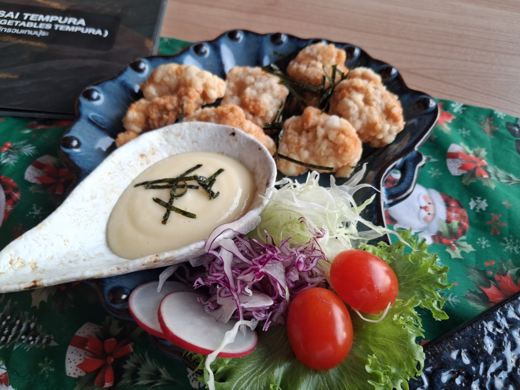 - Yasai vegetable tempura: Crispy batter was on point, but the veg cuts felt Thai-style (chunky rather than delicate Japanese slices). Served with the same mayo as the karaage instead of proper tentsuyu dipping sauce – a missed opportunity.